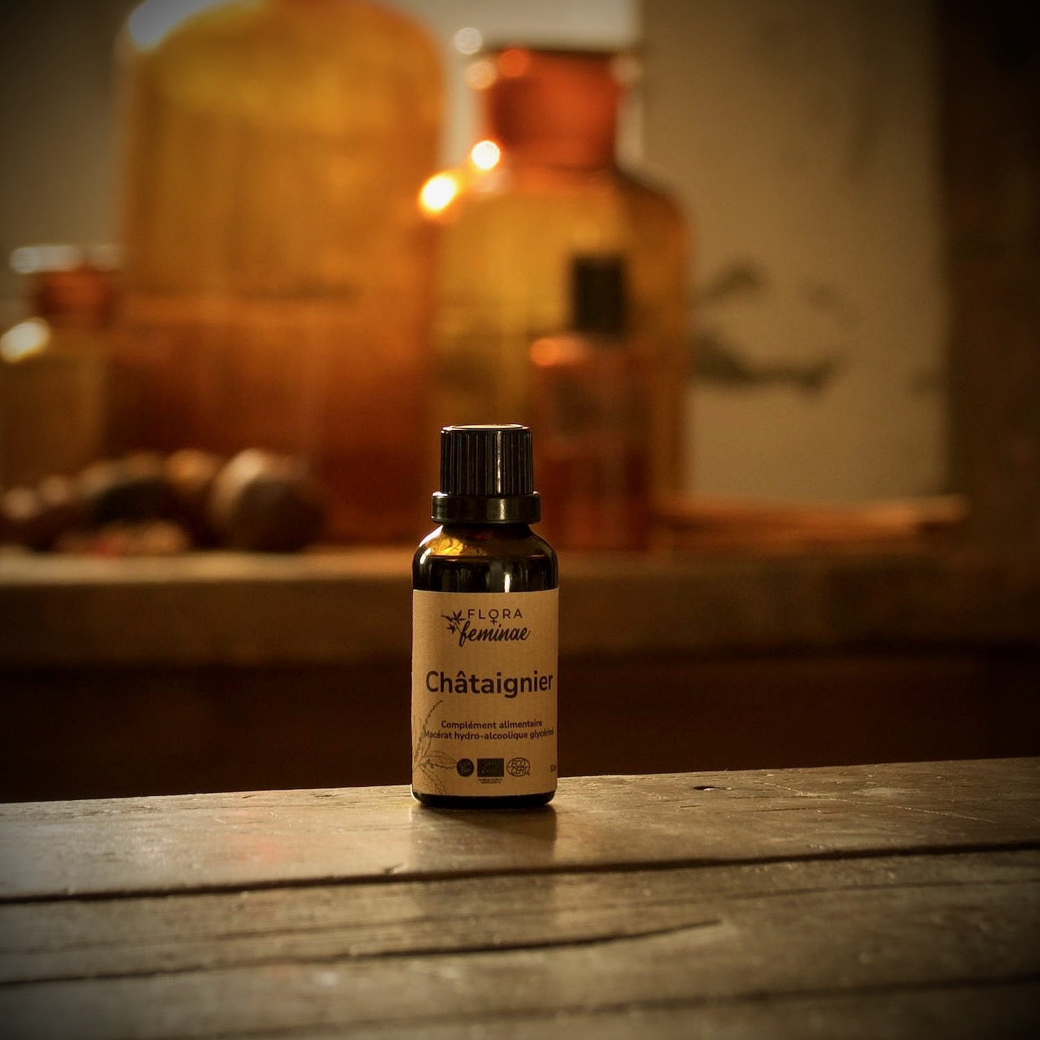 En agissant conjointement sur la circulation sanguine et lymphatique, ce macérat permet un drainage de l’organisme efficace et des tissus profonds. Le bourgeon de châtaignier aura un intérêt pour la femme notamment en cas de congestion pelvienne et de phénomènes de rétention d’eau intervenant notamment lors des règles ou de la ménopause.