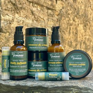 Avec Florafeminae, j’ai souhaité prolonger cet accompagnement de la femme, en proposant une gamme de soins cosmétiques 100 % naturels, formulés à partir de macérations huileuses, d’alcoolatures et d’huiles essentielles, issus de mes plantes et de mon travail de paysanne-herboriste.